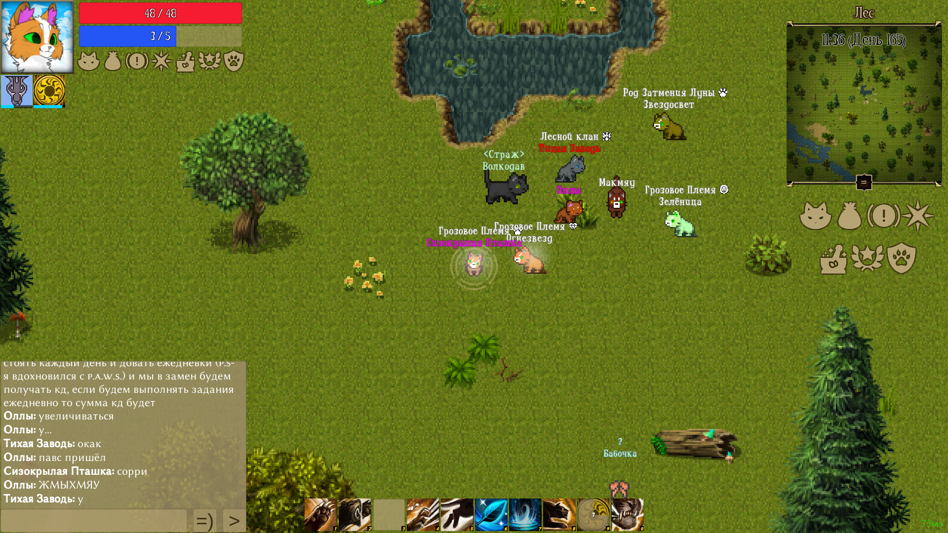Характер: Мудрая, и энергичная кошка. Готова идти на всё ради блага своего племени. Необыкновенная наставница, которую любят все котята в племени. Обитает в Племени Густого Тумана.